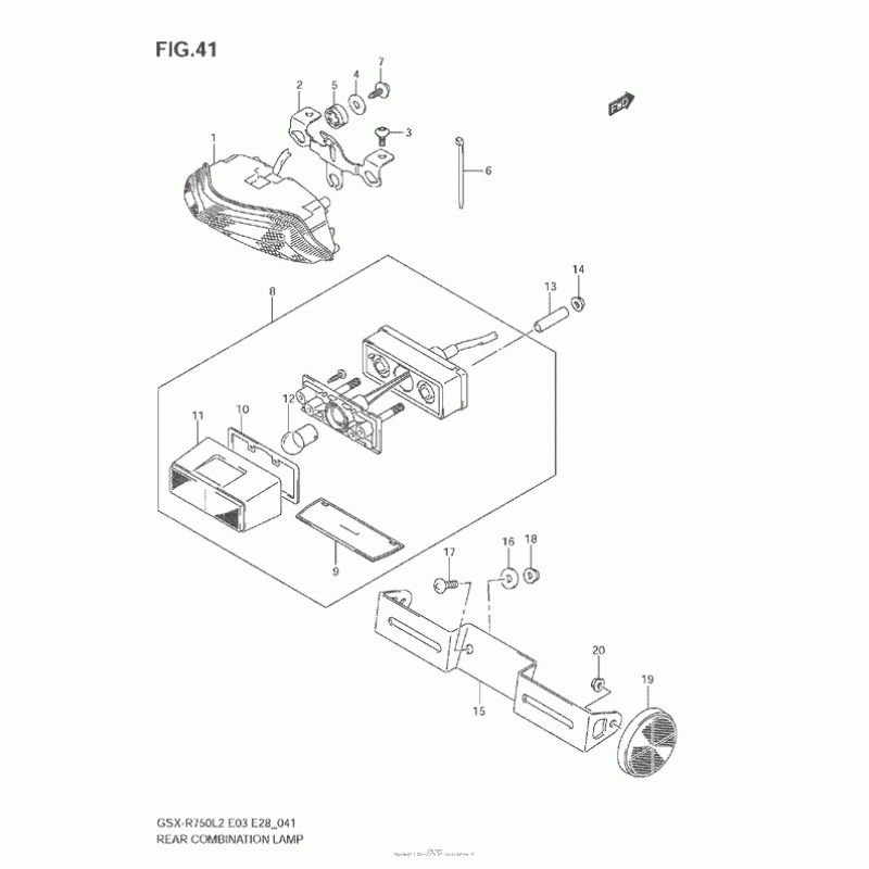 Схема узла: Задний фонарь (Стоп-сигнал) для Suzuki GSX-R750