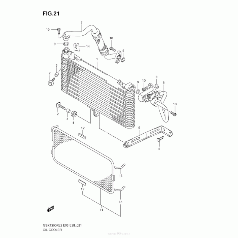 Детализация узла Масляный охладитель для Suzuki GSX1300 Hayabusa.