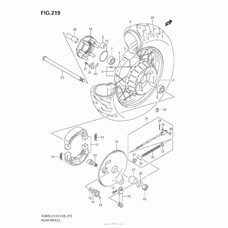 Детализация узла Заднее колесо (Vl800T E28) для Suzuki VZ800 Boulevard M50.