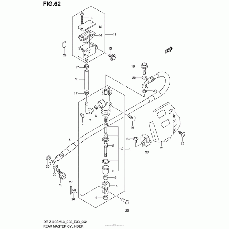Схема узла: Задний тормозной цилиндр для Suzuki DR-Z400 DR-Z400SM