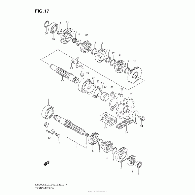 Детализация узла Трансмиссия для Suzuki DR200 DR200SE.