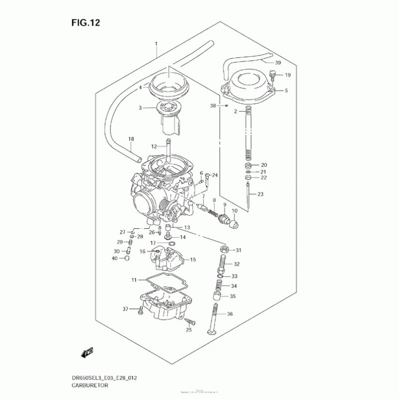Детализация узла Carburetor (Dr650Sel3 E28) для Suzuki DR650 DR650SE.