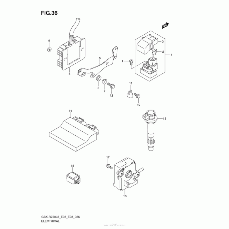Детализация узла Электрооборудование (E28) для Suzuki GSX-R750.