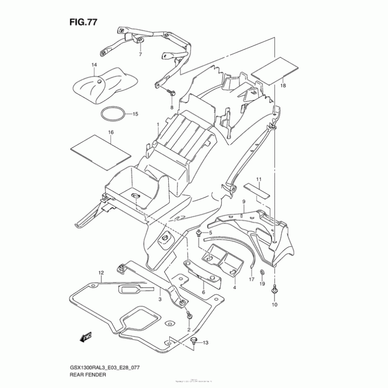 Детализация узла Rear Fender (Gsx1300Ral3 E33) для Suzuki GSX1300 Hayabusa.