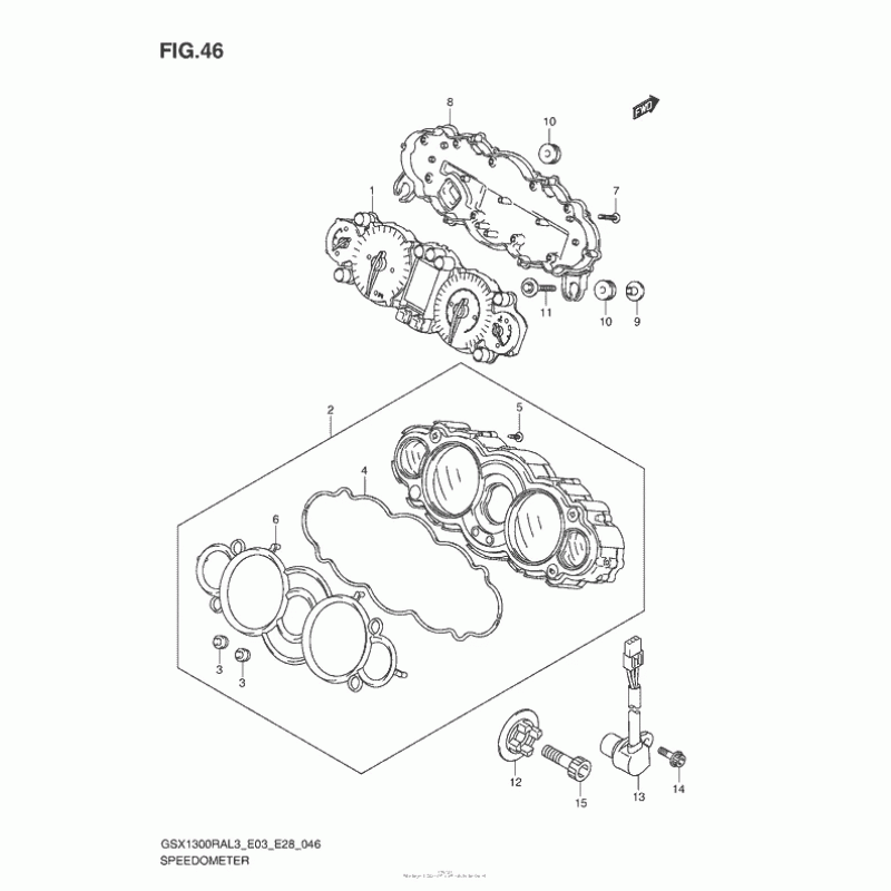 Детализация узла Speedometer (Gsx1300Ral3 E33) для Suzuki GSX1300 Hayabusa.