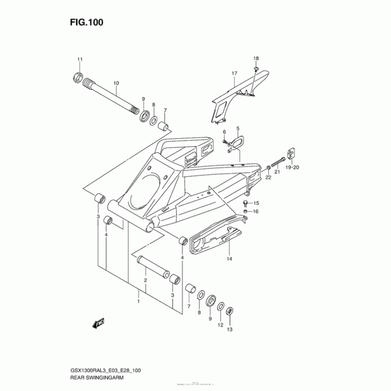 Схема узла: Задний рычаг (Маятник) для Suzuki GSX1300 Hayabusa