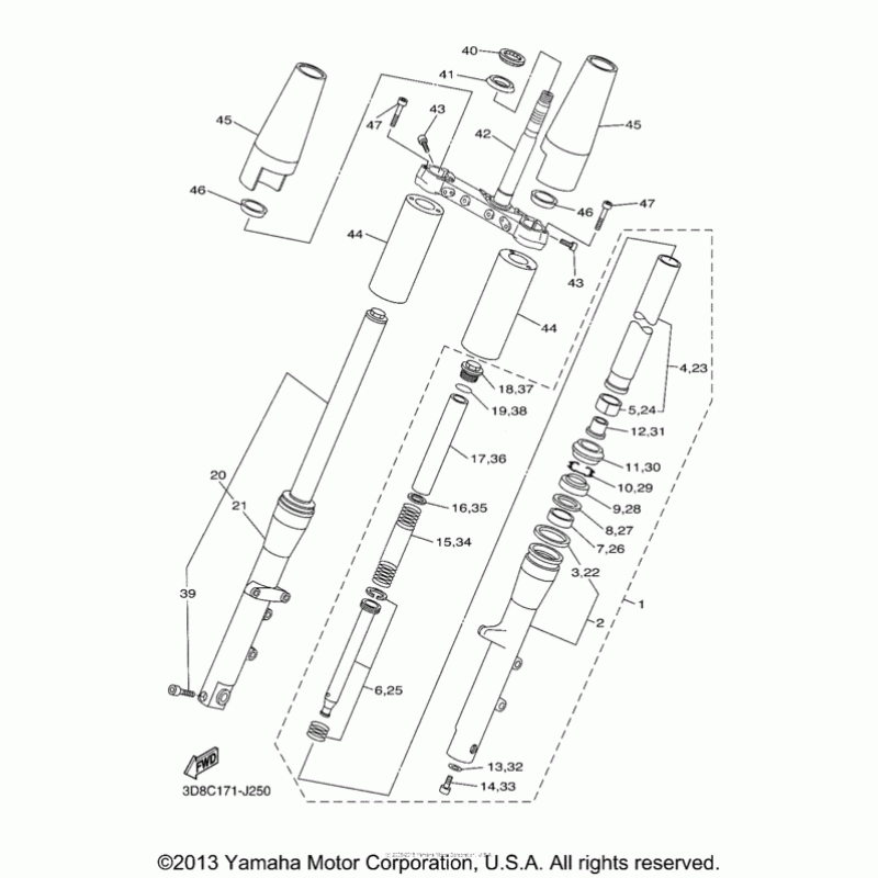 Схема узла: Вилка передней оси Yamaha XVS1300 V-Star Tourer