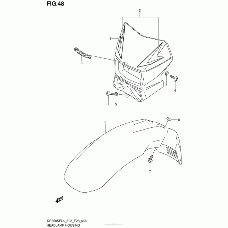 Детализация узла Кожух фары для Suzuki DR650 DR650SE.