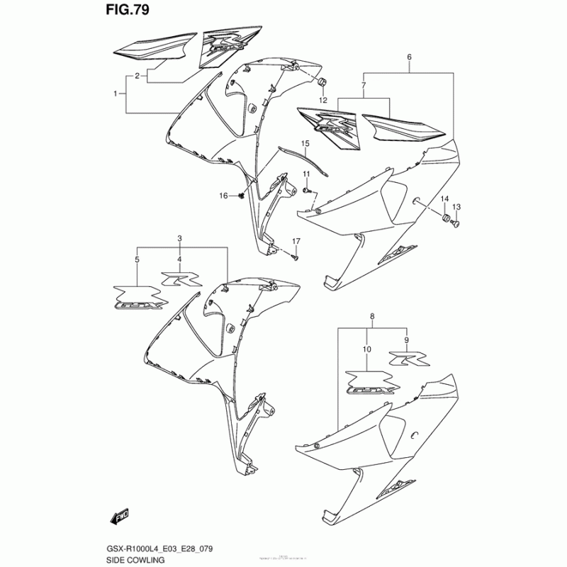 Схема узла: Передний боковой обтекатель для Suzuki GSX-R1000
