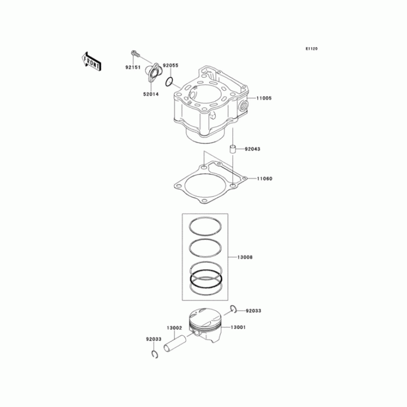 Детализация узла Цилиндр & Поршень для Kawasaki KLX250 KLX250S.
