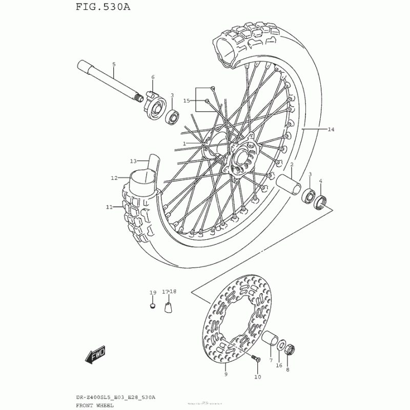 Детализация узла Переднее колесо для Suzuki DR-Z400 DR-Z400S.
