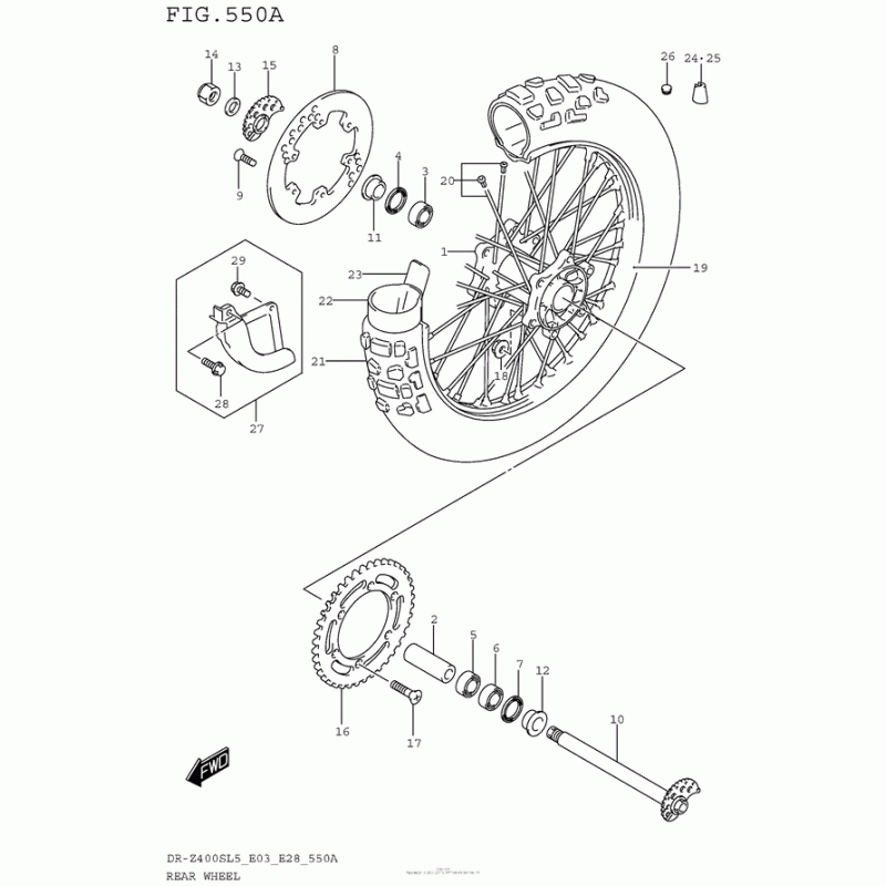 Детализация узла Заднее колесо для Suzuki DR-Z400 DR-Z400S.
