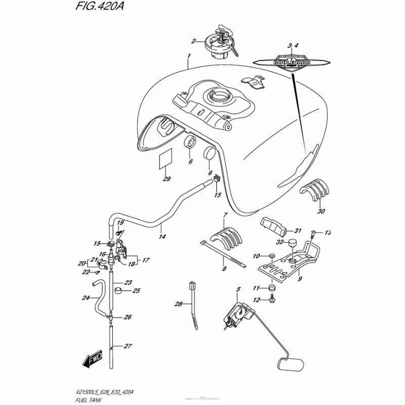 Детализация узла Топливный бак (Vz1500L5 E28) для Suzuki VZ1500 Boulevard M90.