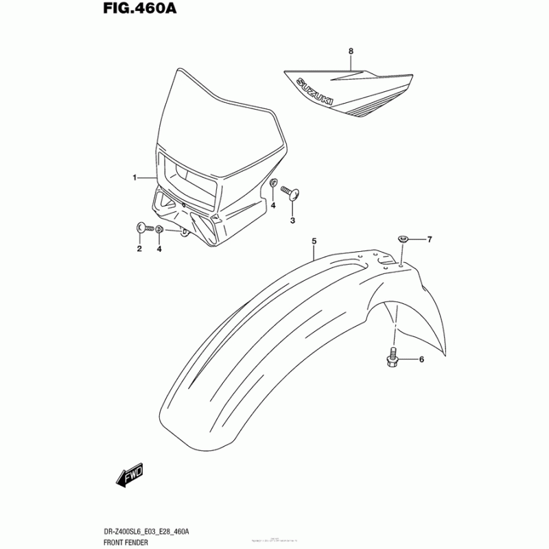 Детализация узла Переднее крыло для Suzuki DR-Z400 DR-Z400S.