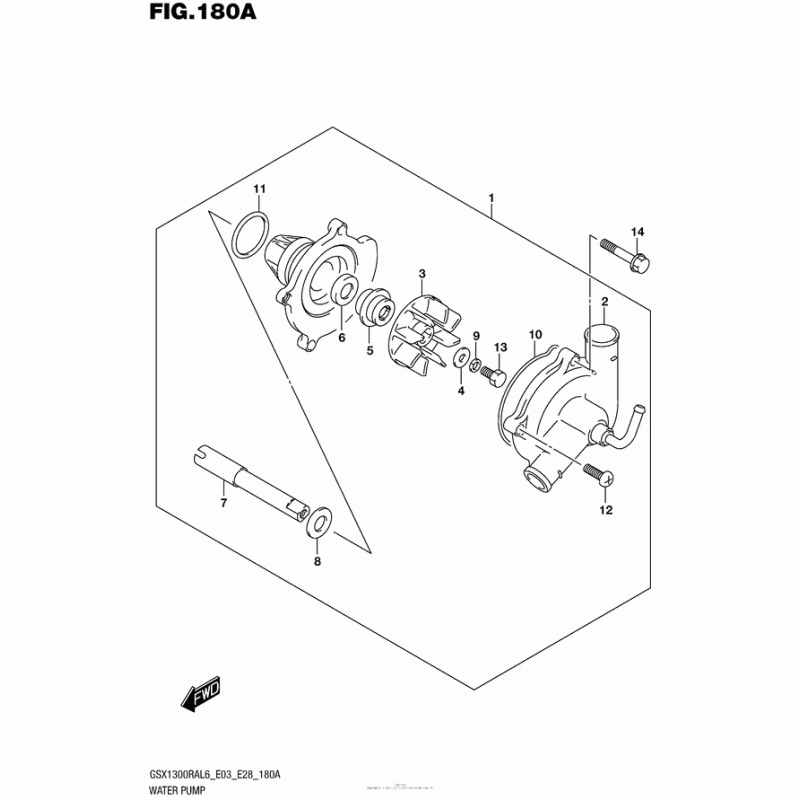 Детализация узла Водяной насос для Suzuki GSX1300 Hayabusa.