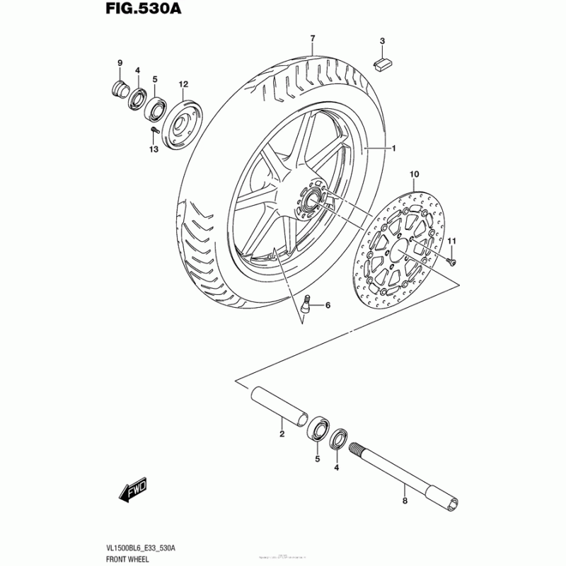 Схема узла: Переднее колесо для Suzuki VL1500 Boulevard C90 B.O.S.S