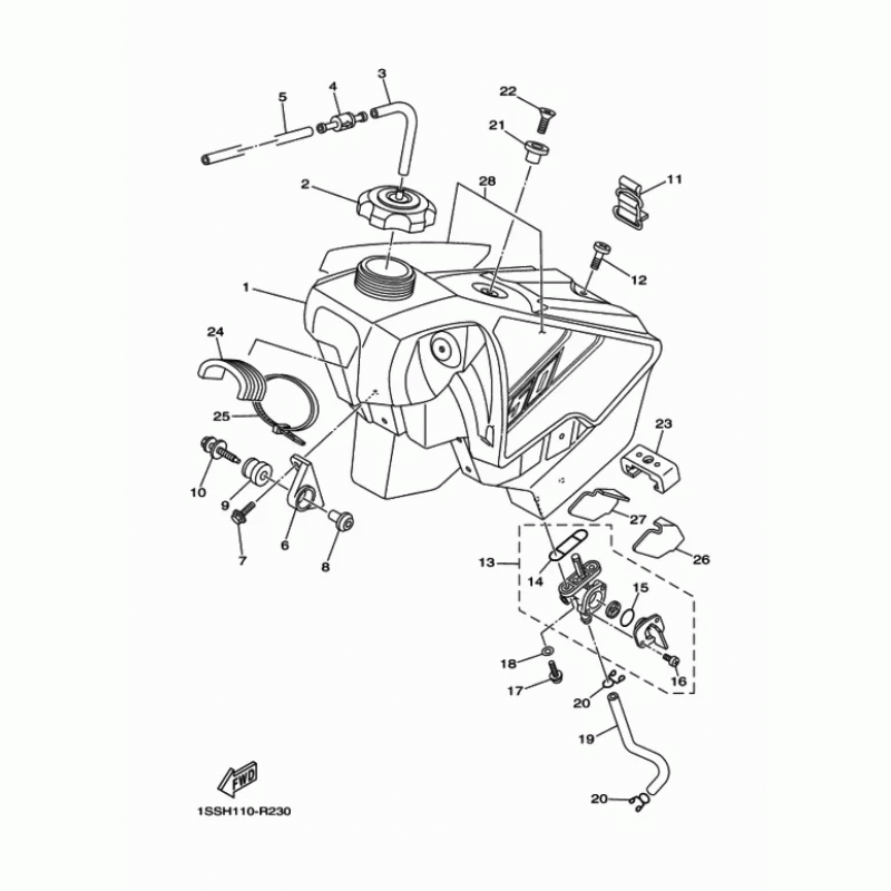 Схема узла: Топливный бак Yamaha YZ250 YZ250