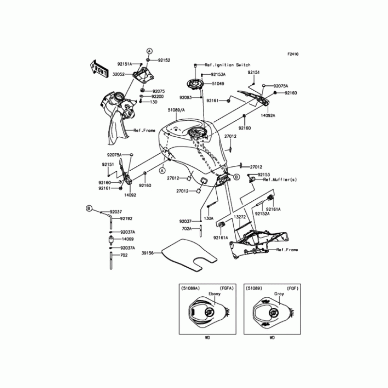 Схема узла: Топливный бак для Kawasaki ZX636 Ninja ZX-6R ABS
