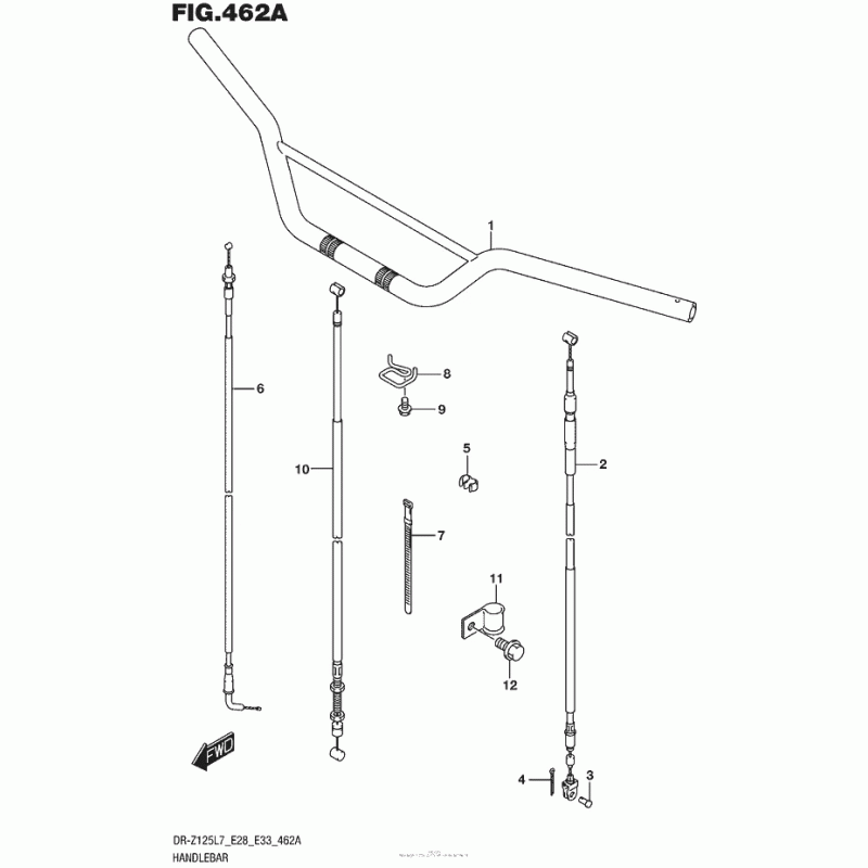 Детализация узла Руль & Тросики (Dr-Z125 E28) для Suzuki DR-Z125 DR-Z125.