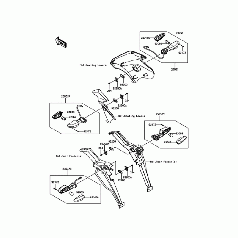 Детализация узла Поворотники для Kawasaki KLZ1000 Versys 1000 LT.