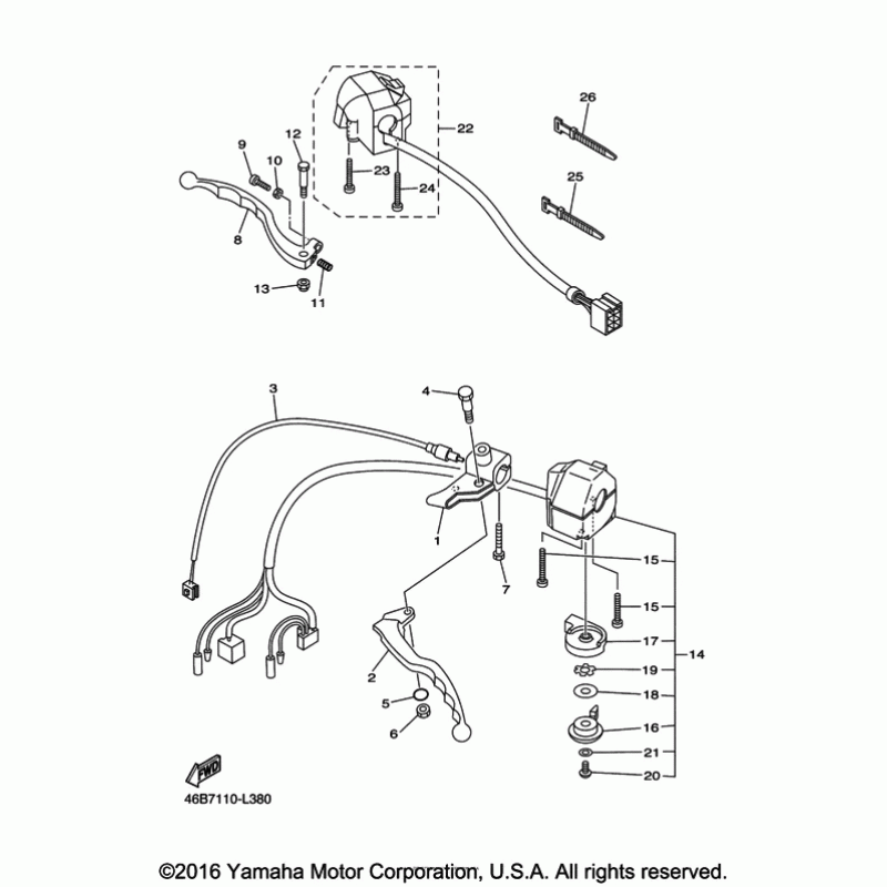 Детализация узла Пульт управления рулевой и Рычаг Yamaha XV250 V-Star.