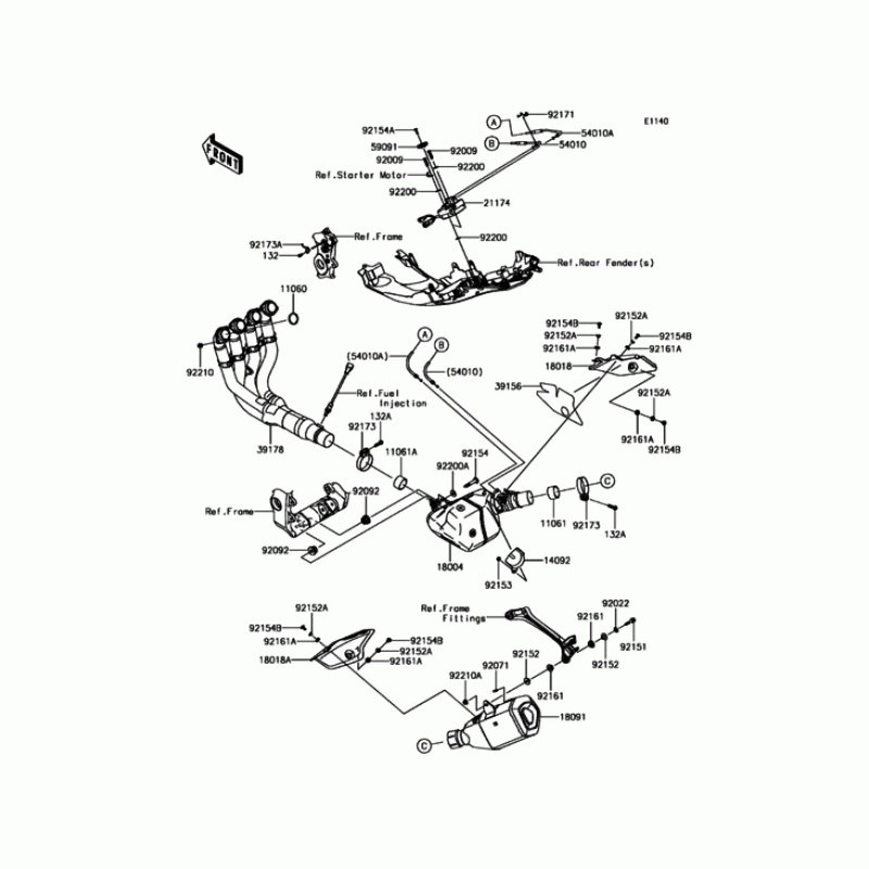 Схема узла: Выхлопная система для Kawasaki ZX1000 Ninja ZX-10R ABS