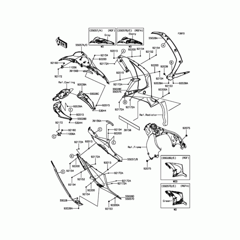 Детализация узла Нижний обтекатель для Kawasaki ZX1000 Ninja ZX-10R.