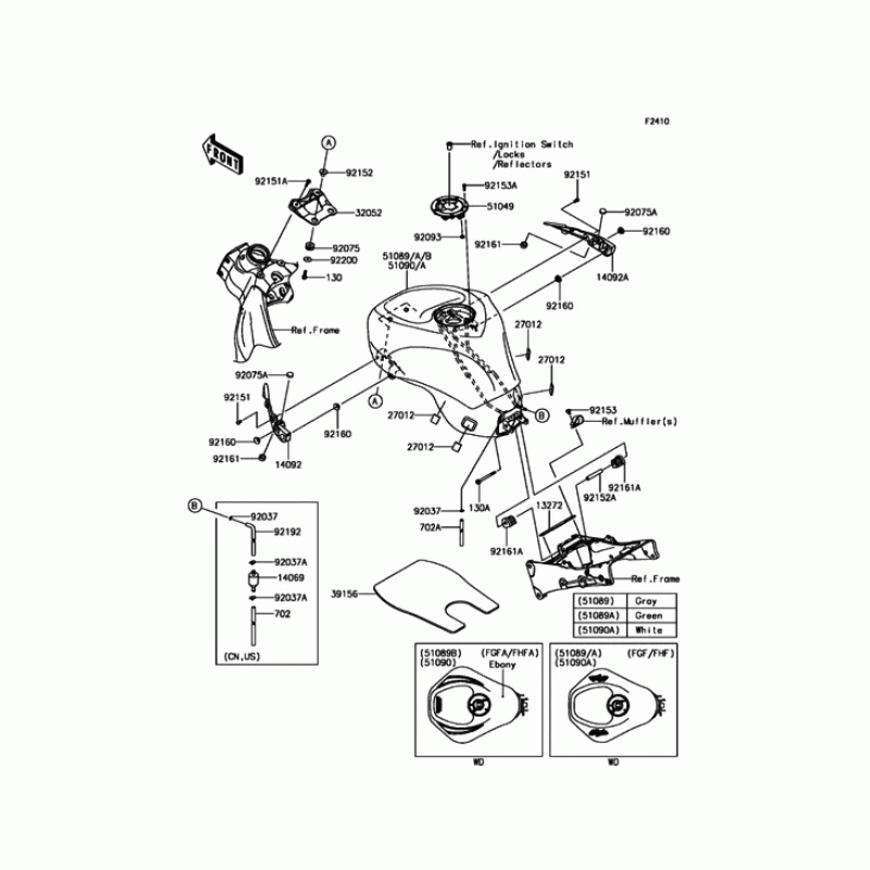 Схема узла: Топливный бак для Kawasaki ZX636 Ninja ZX-6R ABS KRT Edition