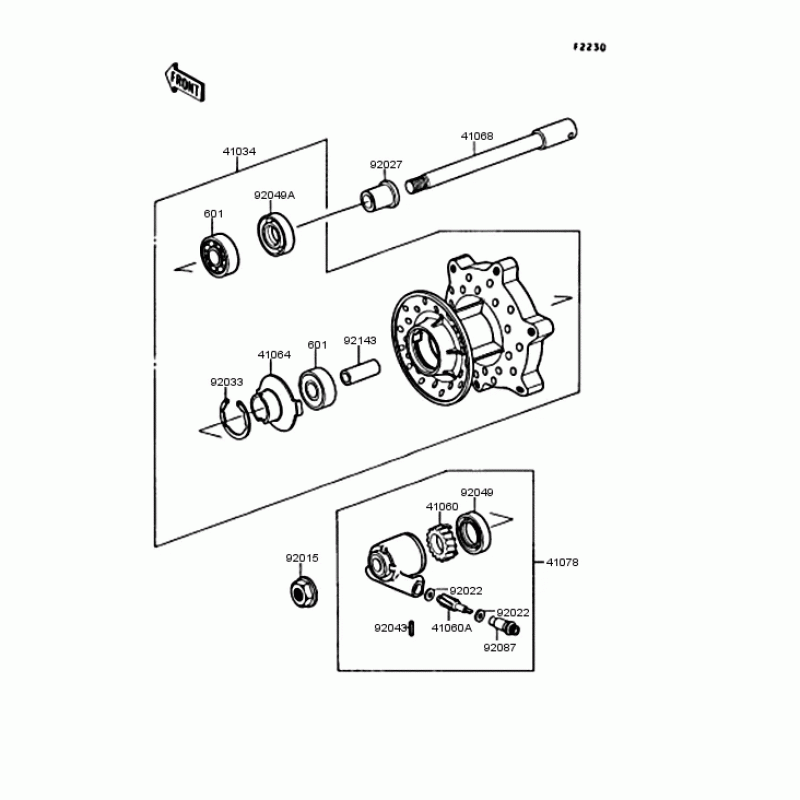 Деталізація вузла Ступиця переднього колеса для Kawasaki EL250 Eliminator 250LX.