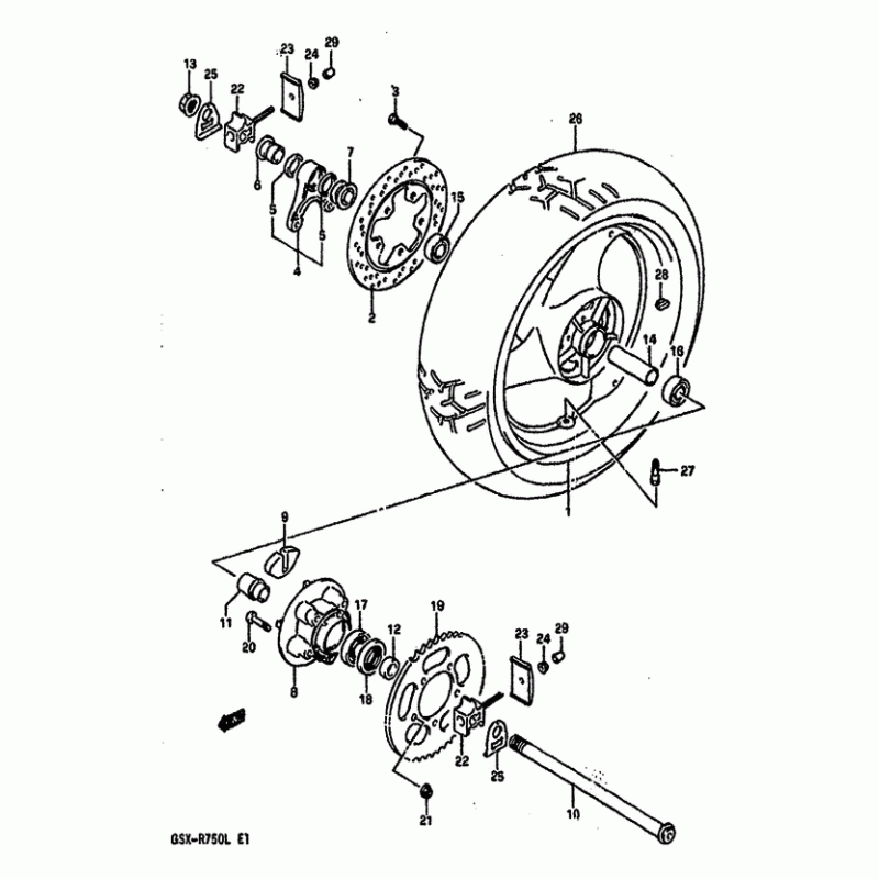 Деталізація вузла Заднє колесо (Model j/k) для Suzuki GSX-R750.