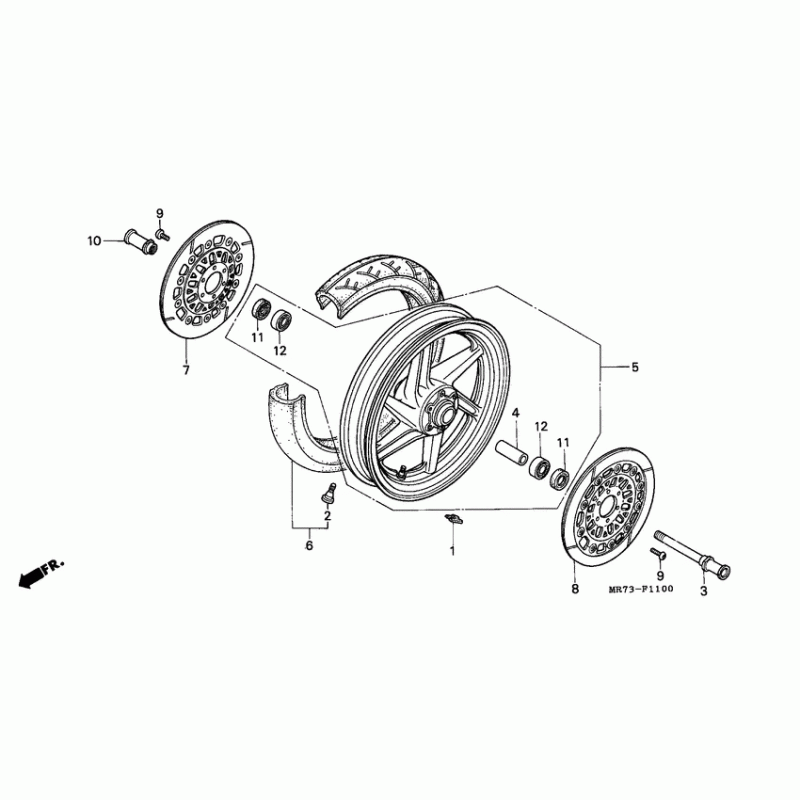 Деталізація вузла Переднє колесо для Honda VFR750F VFR750R (RC30).