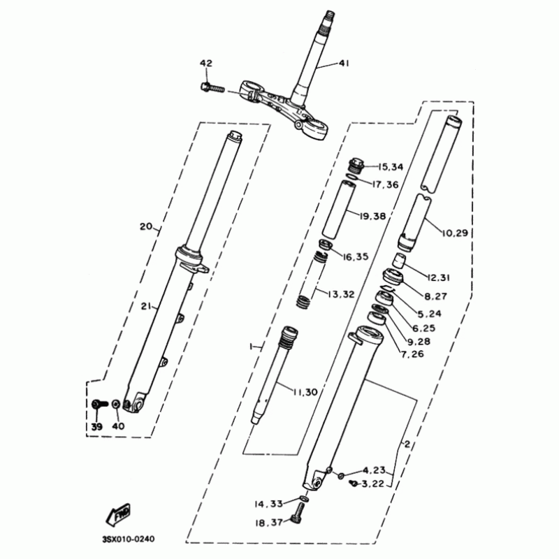 Схема вузла: Вилка передньої осі Yamaha SRX600