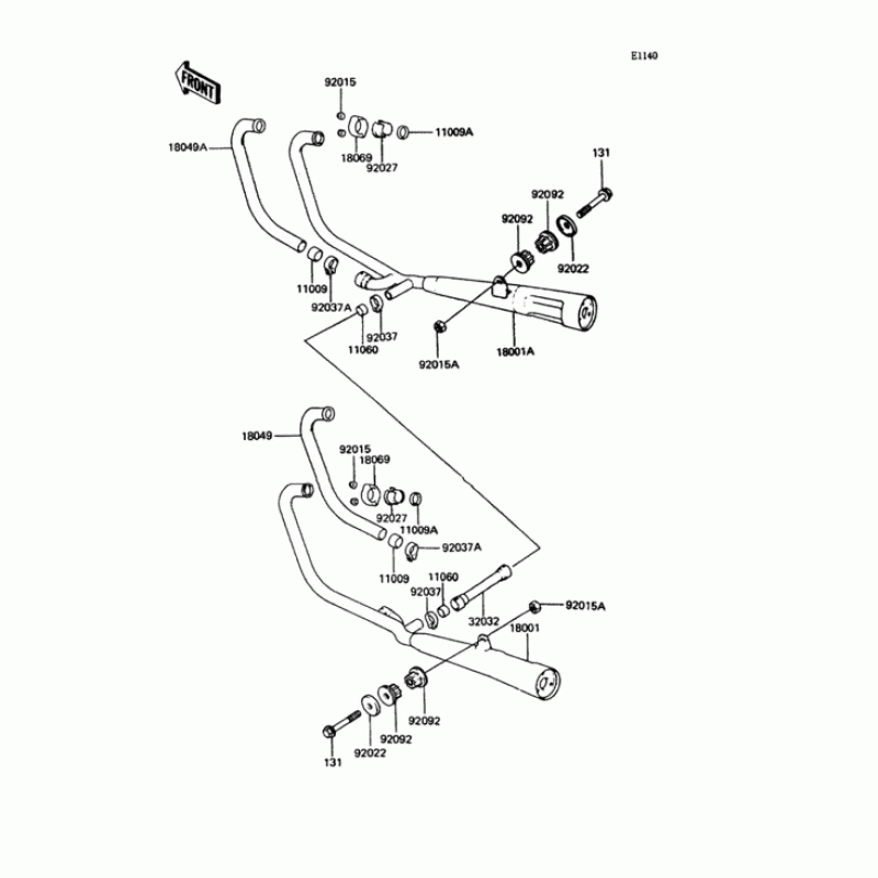 Схема вузла: Вихлопна система для Kawasaki ZX400 Z400FII