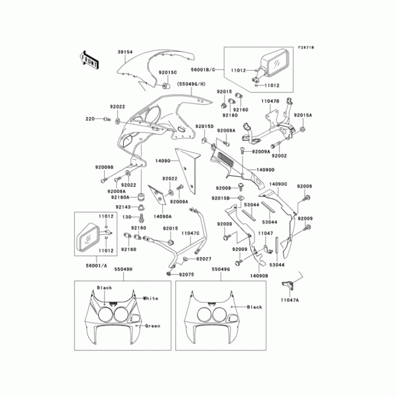 Деталізація вузла Cowling(1/2)(zx750-l3) для Kawasaki ZX750 Ninja ZX-7.
