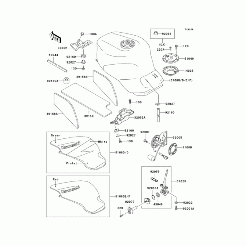 Деталізація вузла Паливний бак(1/2)(zx900-b2) для Kawasaki ZX900 Ninja ZX-9R.