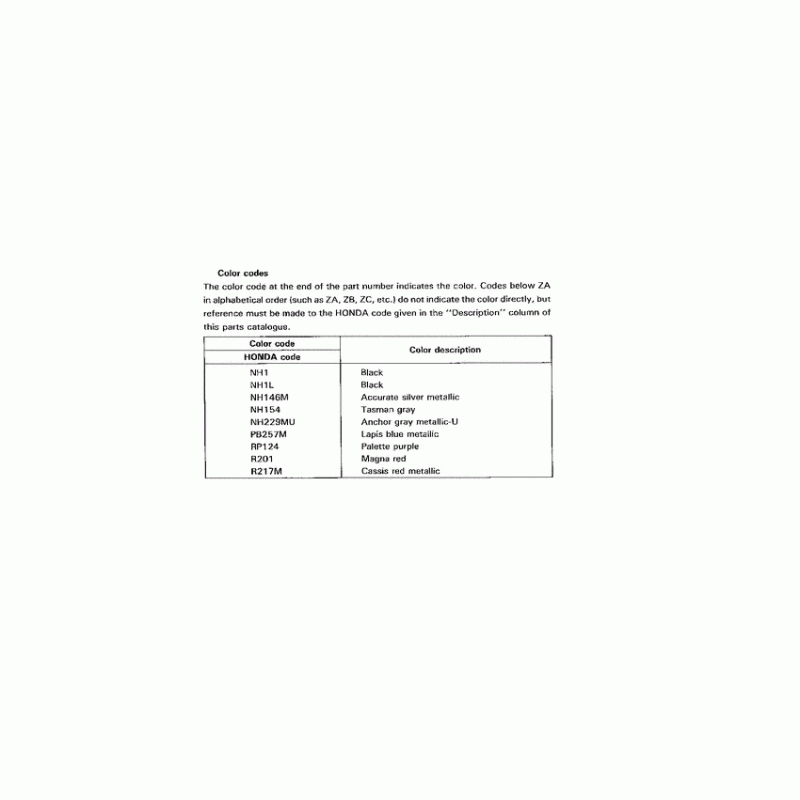 Деталізація вузла Розшифровка кольору для Honda XL600 Transalp.