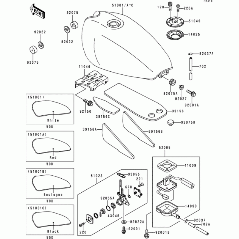 Деталізація вузла Паливний бак(1/2) для Kawasaki ZR550 Zephyr.