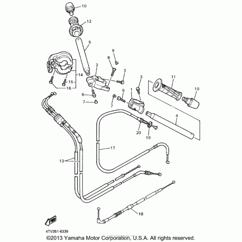 Схема вузла: Кермо та Тросики Yamaha YZF600R Thundercat