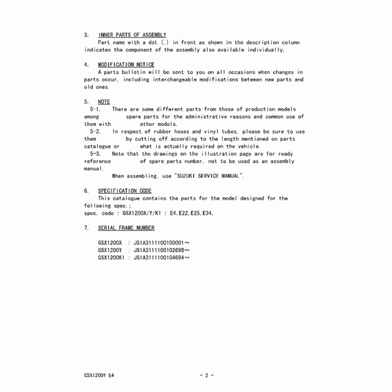 Деталізація вузла Довідкова інформація для Suzuki GSX1200.