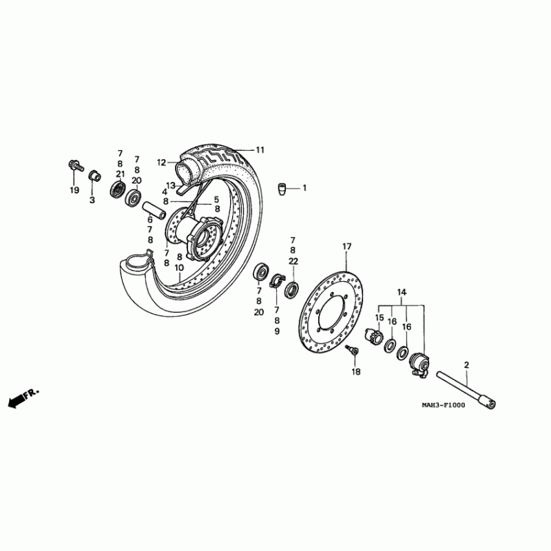Деталізація вузла Переднє колесо для Honda VT1100 Shadow ACE.