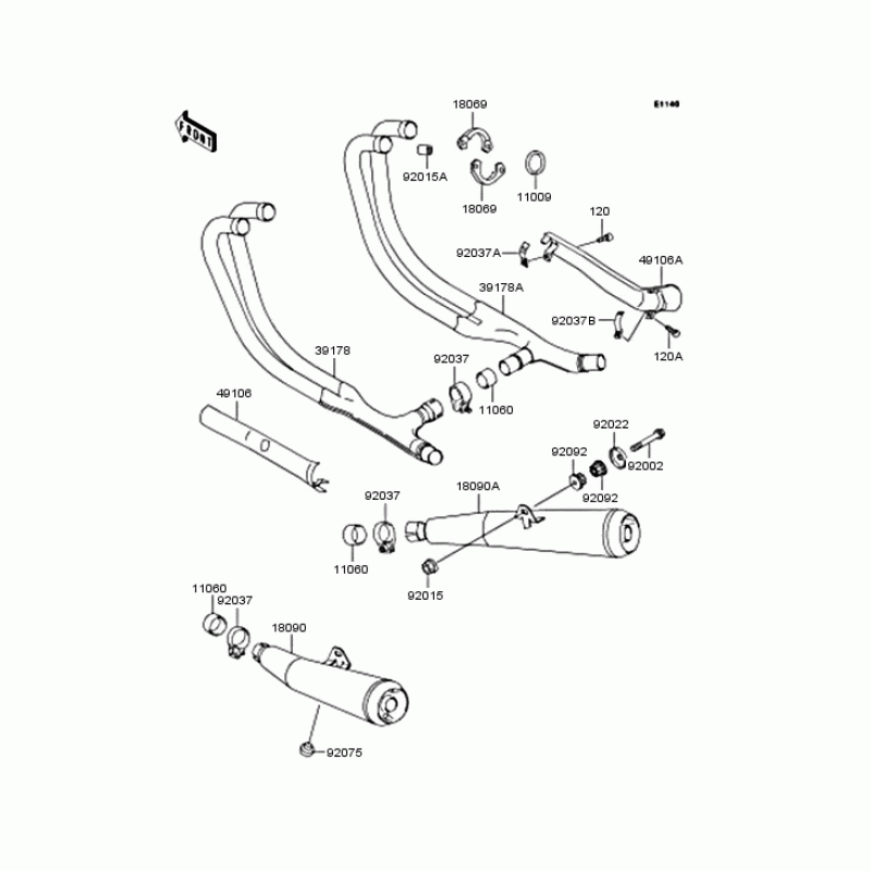 Деталізація вузла Вихлопна система для Kawasaki ZR1100 Zephyr 1100.