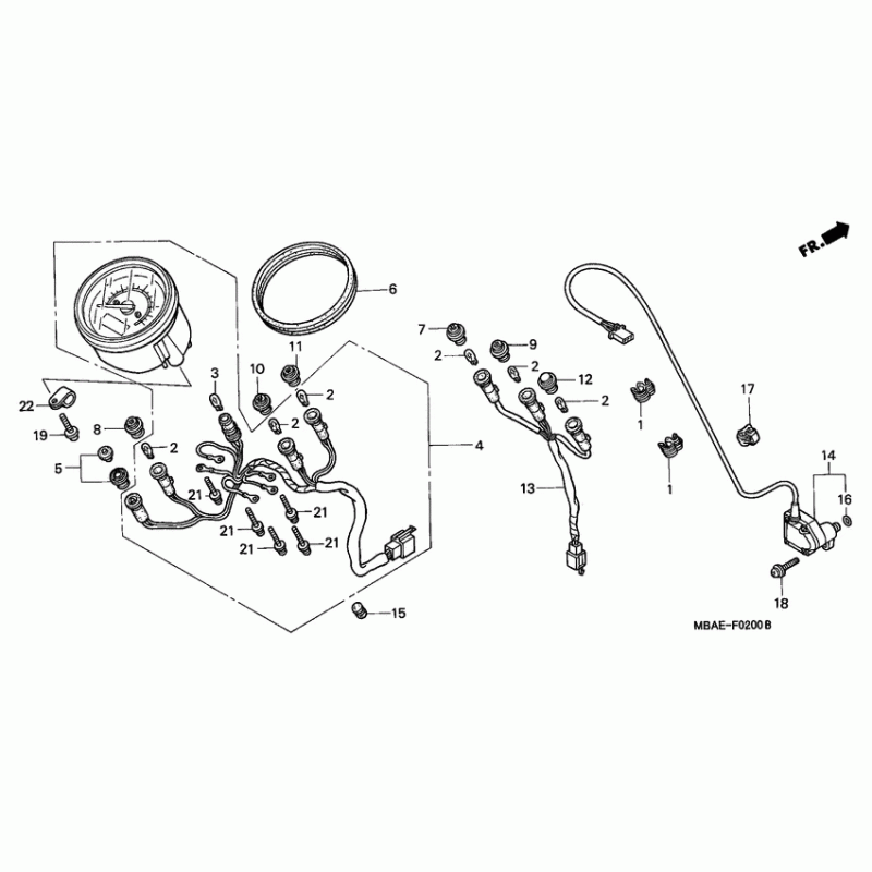 Деталізація вузла Панель приладів для Honda VT750 Shadow ACE.