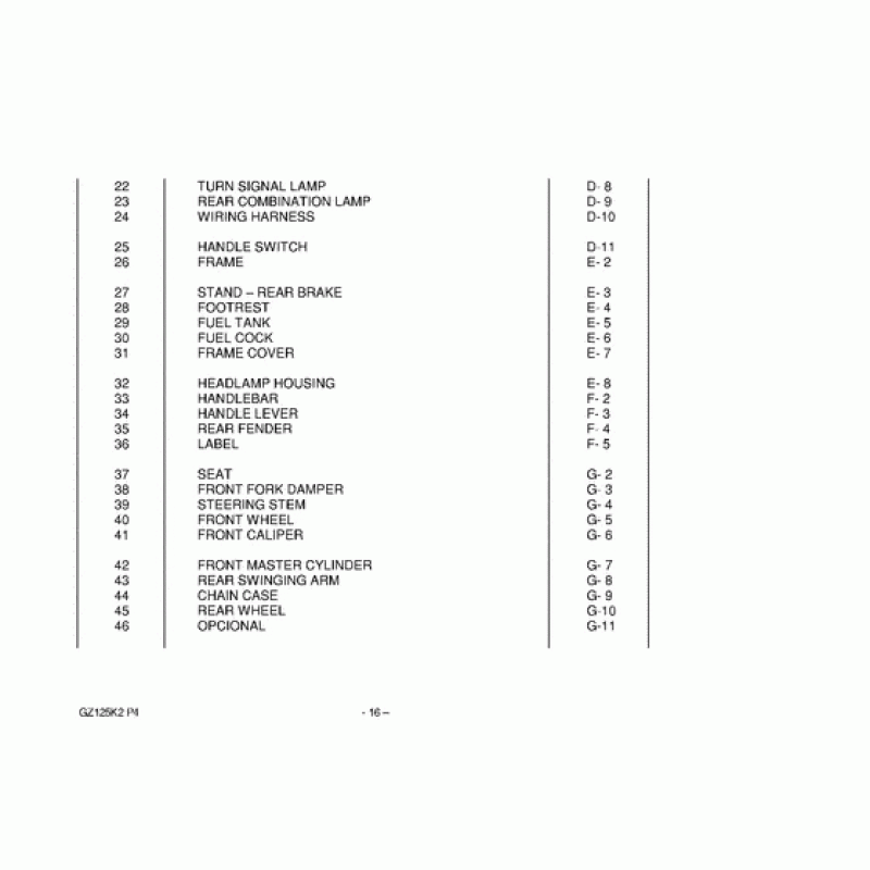 Деталізація вузла Довідкова інформація для Suzuki GZ125 Marauder.