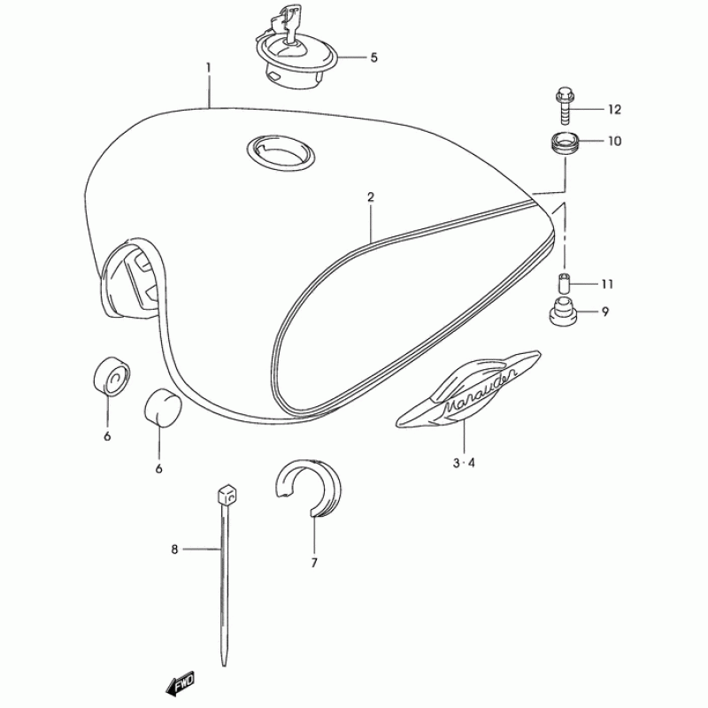 Схема вузла: Паливний бак для Suzuki GZ125 Marauder
