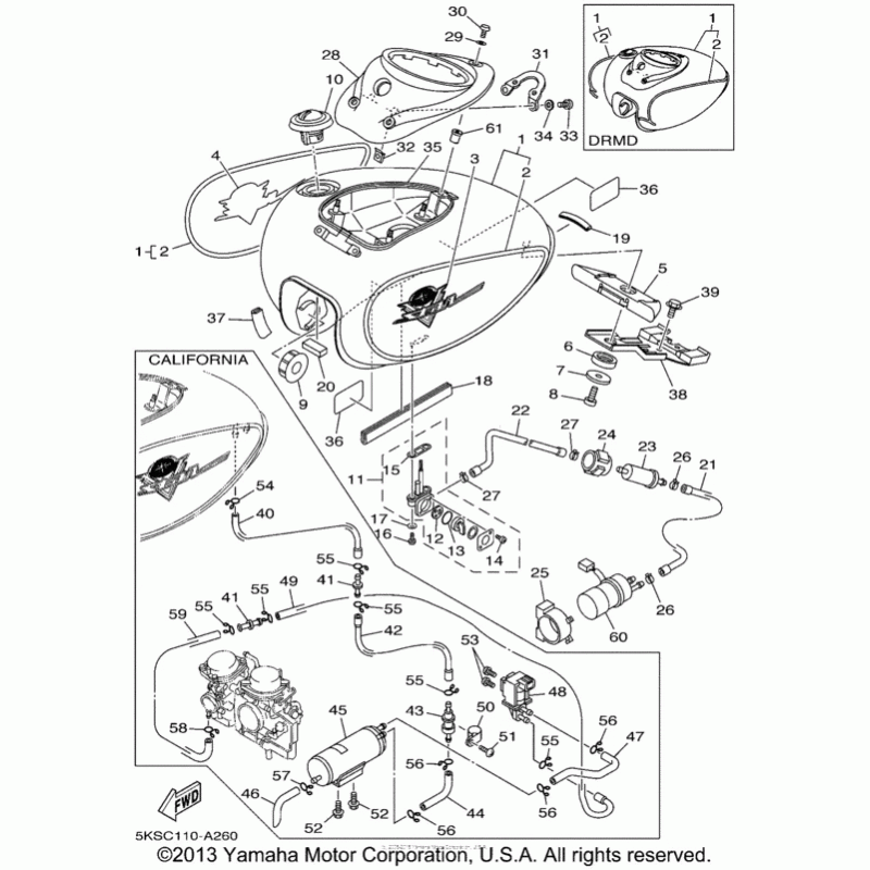 Схема вузла: Паливний бак Yamaha XVS1100 V-Star Classic
