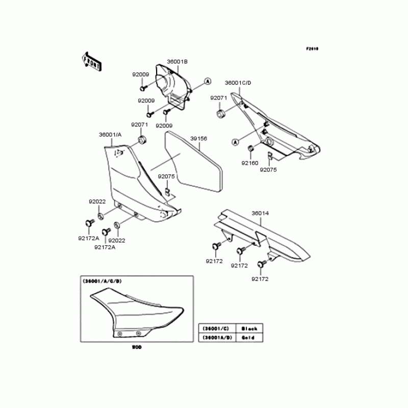 Деталізація вузла Задні бічні обтічники & Захист ланцюга для Kawasaki BN125 Eliminator.
