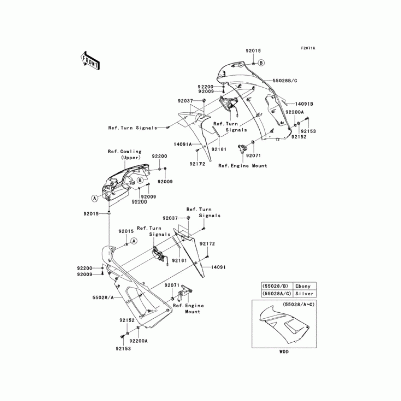 Деталізація вузла Cowling(center)(a6f) для Kawasaki EX650 Ninja 650.