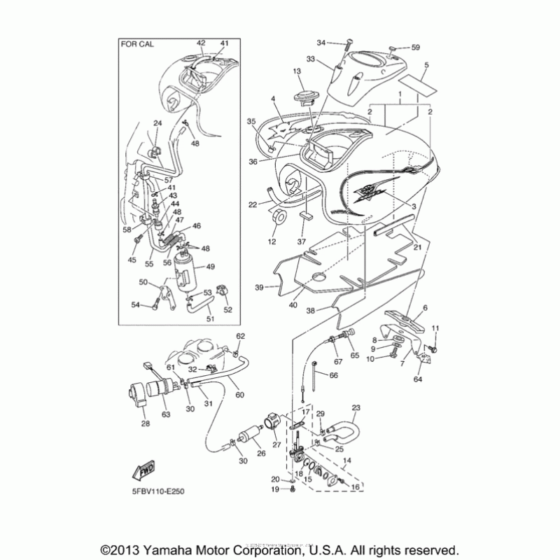 Схема вузла: Паливний бак Yamaha XVS650 V-Star Midnight Custom