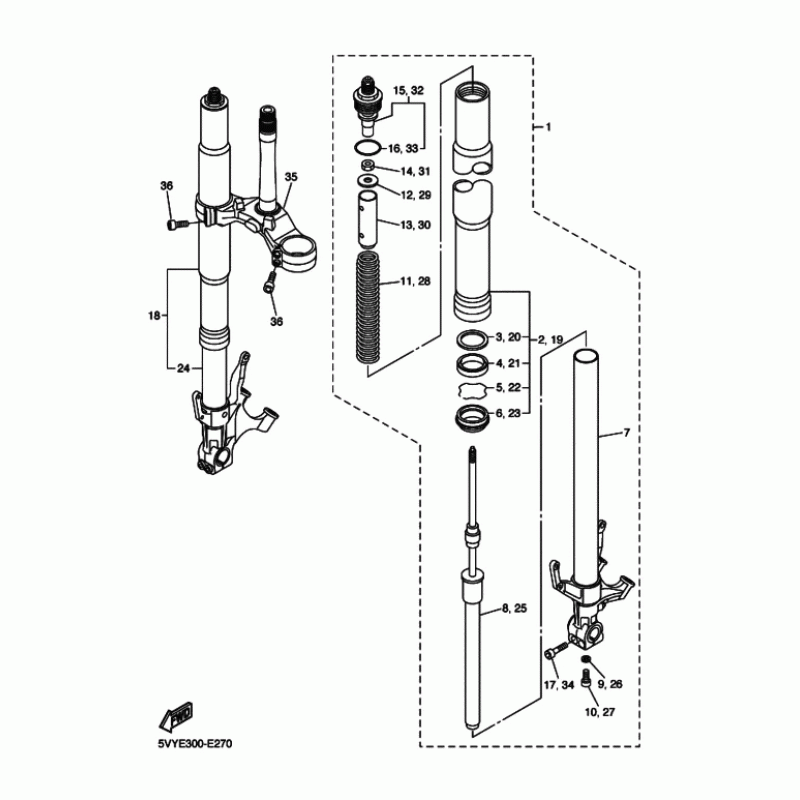 Схема вузла: Вилка передньої осі Yamaha YZF-R1 R1 RaceBase