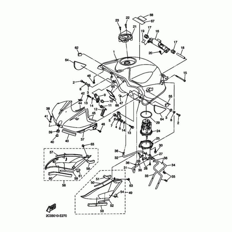 Схема вузла: Паливний бак Yamaha YZF-R6/YZF600 R6 RaceBase